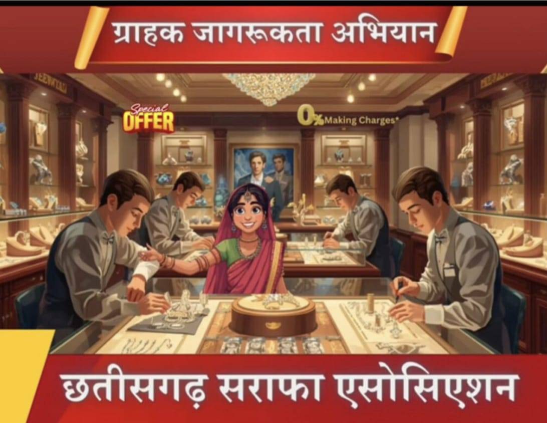 उन्होंने बताया कि त्योहारी सीजन की शुरुआत के साथ ही छत्तीसगढ़ सर्राफा एसोसिएशन ने एक व्यापक ग्राहक जागरूकता अभियान प्रारंभ किया है। इस अभियान का उद्देश्य उपभोक्ताओं को झूठे ऑफरों और भ्रामक विज्ञापनों से सावधान करना है।