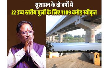प्रदेश सरकार ने जशपुर जिले में 22 उच्चस्तरीय पुलों के निर्माण के लिए 109 करोड़ 09 लाख रुपये तथा 215 छोटे पुल-पुलिया निर्माण के लिए 20 करोड़ 93 लाख रुपये की स्वीकृति प्रदान की है। इन निर्माण कार्यों से जिले के ग्रामीण, वनांचल एवं दूरस्थ क्षेत्रों में वर्षभर निर्बाध आवागमन सुनिश्चित होगा और आम नागरिकों को बड़ी राहत मिलेगी।