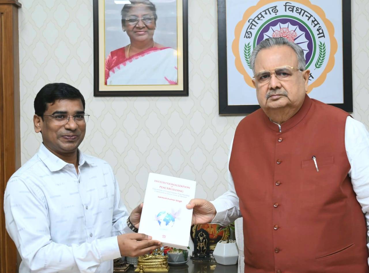 रायपुर. पुलिस मुख्यालय में डीआईजी सीसीटीएनएस/एससीआरबी के रूप में पदस्थ आईपीएस डॉ. संतोष सिंह के संयुक्त राष्ट्र के शांति सुदृढ़ीकरण से जुड़े शोध विषय पर लिखित किताब का प्रकाशन दिल्ली के प्रतिष्ठित मानक पब्लिकेशन द्वारा किया गया है। डॉ सिंह ने मुख्यमंत्री विष्णु देव साय, विधानसभा अध्यक्ष डॉ रमन सिंह और डीजीपी अरुण देव गौतम को किताब की प्रति भेंट किया।
