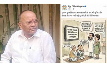छत्तीसगढ़ भाजपा की ओर से जारी पोस्टर में पूर्व मुख्यमंत्री भूपेश बघेल और छत्तीसगढ़ कांग्रेस अध्यक्ष दीपक बैज को राहुल गांधी और प्रियंका वाड्रा के सामने हाथ जो़ड़े दिखाया है. पूर्व मुख्यमंत्री जहां अपने बेटे के लिए तो दूसरी ओर दीपक बैज स्वयं को प्रत्याशी बनाए जाने की गुहार लगा रहे हैं. इस पर प्रियंका वाड्रा कह रही हैं कि फूलो देवी ने उनकी मां की सेवा के लिए जी जान लगा दी थी. पोस्टर के साथ भूपेश बघेल और दीपक बैज पर तंज कसते हुए कहा गया है कि गुलाब का फूल बिछाकर स्वागत करने के बाद भी भूपेश और दीपक बैज पर भारी पड़ी फूलोदेवी की सोनिया सेवा…