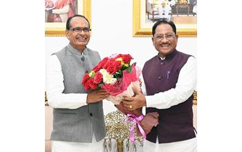 रायपुर, मुख्यमंत्री विष्णुदेव साय से आज राजधानी रायपुर स्थित मुख्यमंत्री निवास कार्यालय में केंद्रीय कृषि मंत्री श्री शिवराज सिंह चौहान ने सौजन्य मुलाकात की। इस अवसर पर मुख्यमंत्री श्री साय ने श्री चौहान का बस्तर आर्ट प्रतीक चिन्ह एवं पुष्पगुच्छ भेंट कर आत्मीय स्वागत किया। मुलाकात के दौरान मुख्यमंत्री श्री साय एवं केंद्रीय कृषि मंत्री श्री चौहान के मध्य छत्तीसगढ़ के किसानों के सशक्तिकरण, कृषि विकास एवं ग्रामीण आजीविका से जुड़े विभिन्न विषयों पर सार्थक चर्चा हुई। केंद्रीय ग्रामीण विकास मंत्री श्री शिवराज सिंह चौहान ने छत्तीसगढ़ में प्रधानमंत्री आवास योजना के प्रभावी क्रियान्वयन तथा छत्तीसगढ़ के नक्सल प्रभावित अंचलों में संचालित ‘नियद नेल्लानार’ योजना के अंतर्गत प्रधानमंत्री आवास योजना अंतर्गत आवास से वंचित परिवारों को पक्के आवास उपलब्ध कराने की पहल की प्रशंसा की। इस अवसर पर कृषि मंत्री श्री रामविचार नेताम, स्कूल शिक्षा मंत्री श्री गजेंद्र यादव, मुख्यमंत्री के प्रमुख सचिव श्री सुबोध कुमार सिंह, मुख्यमंत्री के सचिव श्री राहुल भगत सहित अन्य गणमान्यजन उपस्थित थे।