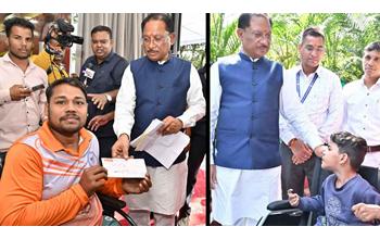 जनदर्शन कार्यक्रम में अभनपुर से आए दिव्यांग रग्बी खिलाड़ी पिंटू राम साहू की मांग पर मुख्यमंत्री विष्णु देव साय ने त्वरित निर्णय लेते हुए 90 हजार रुपए का आर्थिक अनुदान स्वीकृत किया. पिंटू राम ने व्हीलचेयर और आवश्यक खेल सामग्री खरीदने हेतु सहायता मांगी थी. उनकी परिस्थितियों और आवश्यकता को समझते हुए मुख्यमंत्री ने उन्हें तत्काल चेक प्रदान कर उनकी सहायता की.