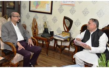 रायपुर, राज्यपाल रमेन डेका से आज यहां लोकभवन में छत्तीसगढ़ दिव्यांगजन, वित्त एवं विकास निगम, रायपुर के अध्यक्ष लोकेश कावड़िया ने सौजन्य भेंट की। उन्होंने महावीर इंटरकान्टिनेंटल आर्गेनाइजेशन (मीसो) के सहयोग से श्रवण बाधितार्थ दिव्यांगजनों हेतु आयोजित स्वरोजगार मूलक कौशल उन्नयन शिविर में बतौर मुख्य अतिथि शामिल होने हेतु राज्यपाल को आमंत्रित किया।