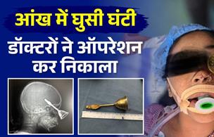 रायपुर. खेल-खेल में 9 वर्षीय मासूम के आंख से होते हुए दिमाग में घंटी घुस गई, जिसके बाद गंभीर अवस्था में मरीज को बिलासपुर से रायपुर के डीकेएस अस्पताल में रेफर किया गया, जहां मरीज का ऑपरेशन कर घंटी को बाहर निकाला गया. डीकेएस अस्पताल प्रबंधन के मुताबिक मरीज अभी आईसीयू में है और उसका इलाज जारी है. डॉक्टरों के मुताबिक मासूम खेल रही थी और वे घंटी में गिर गई, जिसके बाद घंटी आंख में घुस गई.
