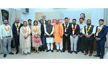 रायपुर, मुख्यमंत्री विष्णु देव साय से विगत दिवस राजधानी रायपुर स्थित उनके निवास कार्यालय में छत्तीसगढ़ लोक सेवा आयोग 2024 के टॉप 10 अभ्यर्थियों ने सौजन्य भेंट की। मुख्यमंत्री साय ने सभी चयनित अभ्यर्थियों और उनके परिजनों को सफलता के लिए शुभकामनाएं और बधाई दी। इस अवसर पर विधायक ललित चंद्राकर और राजभाषा अधिकारी श्री छगन लाल नागवंशी भी उपस्थित थे। मुख्यमंत्री साय ने विद्यार्थियों से उनकी तैयारी के अनुभव, परीक्षा के दौरान आने वाली चुनौतियों और भविष्य की योजनाओं के बारे में विस्तार से जानकारी ली। उन्होंने कहा कि मेहनत, अनुशासन और सकारात्मक सोच के कारण विद्यार्थियों ने यह महत्वपूर्ण उपलब्धि हासिल की है।