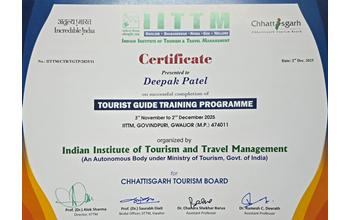 आईआईटीटीएम के डायरेक्टर डॉ. आलोक शर्मा, प्रोफेसर्स तथा छत्तीसगढ़ टूरिज्म बोर्ड के अधिकारियों ने प्रशिक्षण समापन कार्यक्रम में प्रतिभागियों को प्रमाणपत्र वितरित कर सम्मानित किया। उन्होंने युवाओं के उज्जवल भविष्य की कामना की तथा प्रदेश की साय सरकार की इन सकारात्मक पहल की सराहना की। पर्यटन एवं संस्कृति मंत्री श्री राजेश अग्रवाल ने कहा कि यह प्रशिक्षण हमारी नई पीढ़ी को रोजगार और स्वरोजगार के अवसर प्रदान करेगा। छत्तीसगढ़ सरकार पर्यटन क्षेत्र को बढ़ावा देने और प्रदेश की सकारात्मक छवि को राष्ट्रीय व वैश्विक स्तर पर स्थापित करने के लिए प्रतिबद्ध है। इस पहल से न केवल युवाओं में पर्यटन उद्योग के प्रति जागरूकता और कौशल विकसित हुआ है, बल्कि यह छत्तीसगढ़ के आर्थिक विकास और पर्यटन को नई ऊंचाइयों तक पहुंचाने में भी सहायक सिद्ध होगा। प्रशिक्षित गाइडों के माध्यम से प्रदेश की सांस्कृतिक और प्राकृतिक पर्यटन स्थलों का प्रचार-प्रसार बेहतर ढंग से किया जा सकेगा जो छत्तीसगढ़ को विश्व पर्यटन मानचित्र पर पहचान दिलाने में महत्वपूर्ण भूमिका निभाएगा। यह प्रशिक्षण कार्यक्रम प्रदेश सरकार की पर्यटन संवर्धन की नीति के अनुरूप एक सफल कदम है, जो युवाओं के सशक्तिकरण में अहम योगदान देता है।