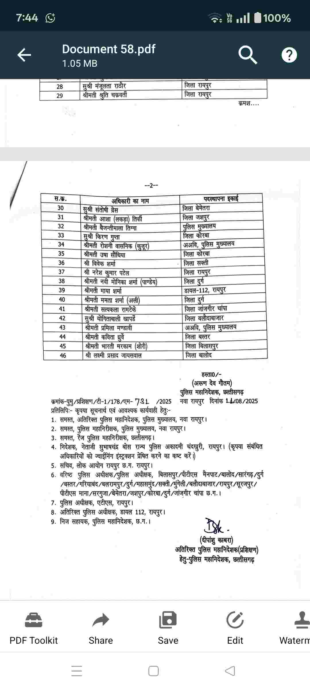 डीजीपी अरुण देव के द्वारा जारी आदेश के अनुसार सभी 46 डीएसपी को उक्त तारीख को नेता जी सुभाषचंद्र बोस राज्य पुलिस अकादमी मे उपस्थित होना है।