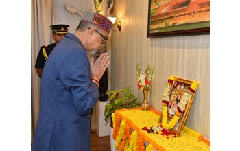 रायपुर, राज्यपाल रमेन डेका ने संत बाबा गुरु घासीदास जी की जयंती के अवसर पर लोकभवन में गुरु घासीदास जी के छायाचित्र पर पुष्पांजलि अर्पित की।