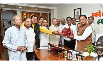 रायपुर। छत्तीसगढ़ प्रांतीय अग्रवाल संगठन के प्रांतीय अध्यक्ष डॉ. अशोक अग्रवाल के नेतृत्व में अग्रवाल समाज के प्रतिनिधिमंडल ने मुख्यमंत्री विष्णुदेव साय से शिष्टाचार भेंट की। मुलाकात का मुख्य उद्देश्य छत्तीसगढ़ से राज्यसभा की रिक्त होने वाली सीट के लिए समाज के वरिष्ठ नेता गौरीशंकर अग्रवाल को भारतीय जनता पार्टी की ओर से उम्मीदवार बनाए जाने का अनुरोध करना था।