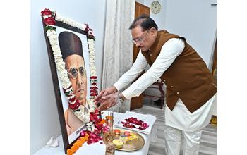 रायपुर, मुख्यमंत्री विष्णु देव साय ने आज राजधानी रायपुर स्थित मुख्यमंत्री निवास कार्यालय में महान क्रांतिकारी, प्रखर राष्ट्रवादी चिंतक एवं स्वतंत्रता सेनानी विनायक दामोदर सावरकर की पुण्यतिथि पर उनके छायाचित्र पर पुष्पांजलि अर्पित कर श्रद्धापूर्वक नमन किया। इस अवसर पर मुख्यमंत्री श्री साय ने कहा कि वीर सावरकर केवल एक स्वतंत्रता सेनानी ही नहीं, बल्कि दूरदर्शी विचारक, समाज सुधारक, ओजस्वी लेखक-कवि और प्रखर इतिहासकार भी थे। उन्होंने भारतीय स्वाधीनता संग्राम को नई वैचारिक ऊर्जा प्रदान की तथा राष्ट्रभक्ति की भावना को जन-जन तक पहुंचाने में महत्वपूर्ण भूमिका निभाई।